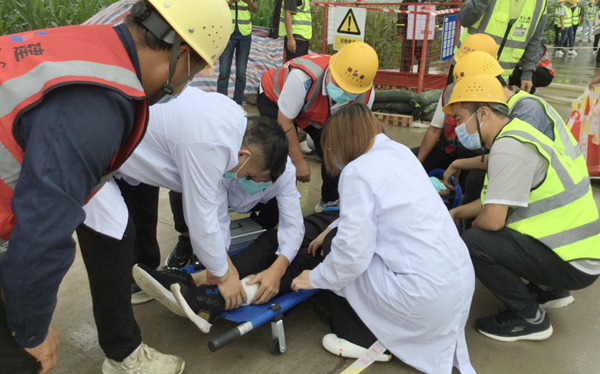 本次演練模擬施工現(xiàn)場突遭暴雨,為防止基坑坍塌造成人員及財(cái)產(chǎn)損失,項(xiàng)目部開展緊急搶險(xiǎn)救援工作。在此之前,項(xiàng)目部制定了詳細(xì)的應(yīng)急演練方案,包含預(yù)警發(fā)布、預(yù)警行動(dòng)、應(yīng)急響應(yīng)、應(yīng)急處置、搶險(xiǎn)救援、人員疏散、響應(yīng)中止等場景內(nèi)容,成立了以項(xiàng)目經(jīng)理為總指揮的應(yīng)急救援領(lǐng)導(dǎo)小組,明確了人員分工。各參演人員接到事故報(bào)告后,根據(jù)演練場景設(shè)計(jì),嚴(yán)格按照各自職責(zé)第一時(shí)間做出響應(yīng),采取應(yīng)對措施,實(shí)戰(zhàn)模擬了道路巡查、排水疏通、積水抽排、指揮調(diào)度、營救群眾、疏散轉(zhuǎn)移等多個(gè)場景。整個(gè)演練過程有條不紊,緊張有序,達(dá)到了預(yù)期效果。
