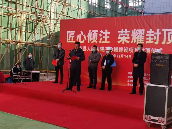 11月14日上午,由集團承建的子洲縣人民醫(yī)院門診樓建設項目主體結構順利封頂。縣衛(wèi)健局黨組書記、局長張智力出席封頂儀式并講話。儀式由子洲縣衛(wèi)健局副局長常榮主持。