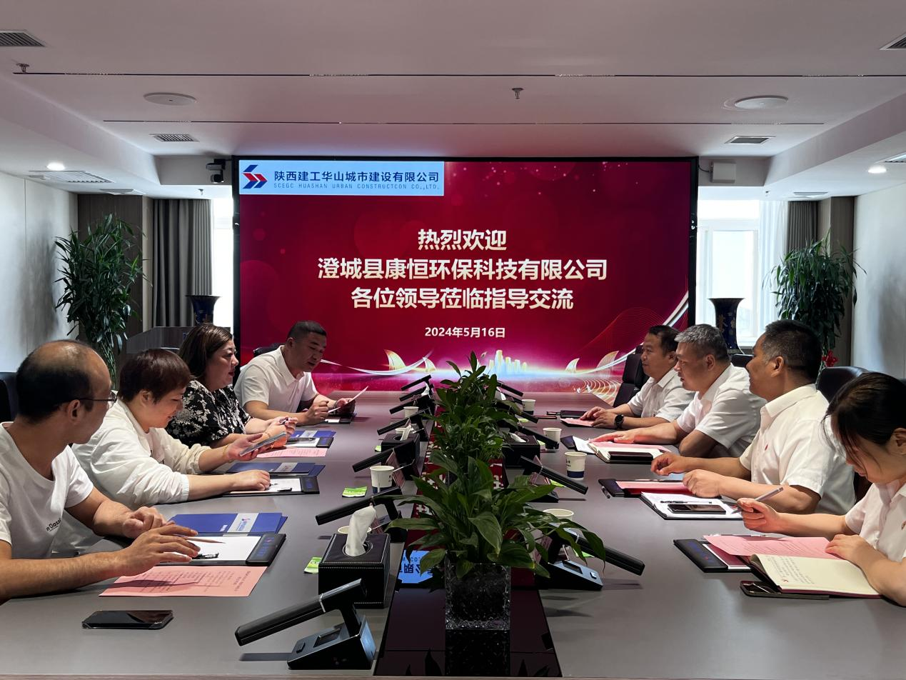 5月16日,陜建華山城建公司與澄城縣康恒環(huán)保科技座談交流。陜建華山城建公司董事長楊眉,澄城縣康恒環(huán)??萍加邢薰緢?zhí)行董事兼總經(jīng)理鄭超、副總經(jīng)理鄭加明等出席。會議由陜建華山城建公司副總經(jīng)理王維昌主持。