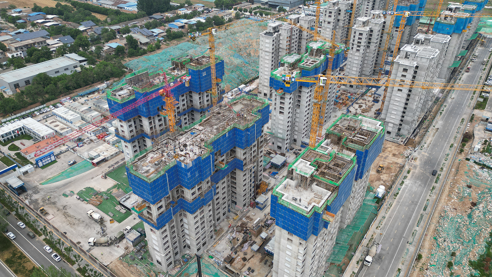 施工工程一標(biāo)段四棟住宅樓主體結(jié)構(gòu)全部封頂